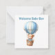 Niedlicher Boy Teddy Bär in einem Hot Air Balloon Postcard. Willkommen beim neuen Baby. Geburtsankündigungskarte.