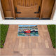 Willkommen oder Name, Fischerboote, weißer Text Fußmatte