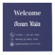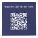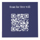 Für Hotelzimmer, Restauranttische, Mietobjekte. Personalisieren und hinzufügen Sie Ihr Firmenlogo und Platz für 4 QR Codes. Navy blauer Hintergrund, weißer Text.