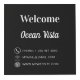 Für Hotelzimmer, Restauranttische, Mietobjekte. Personalisieren und hinzufügen Sie Ihr Firmenlogo und Platz für 4 QR Codes. Schwarzer Hintergrund, weißer Text.
