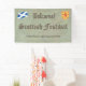 Willkommen Banner für ein schottisches Fest oder eine thematische Veranstaltung. Anpassen des gesamten Texts Der Hintergrund ist eine Vintage Landkarte von Schottland, und die schottische Flagge und die Symbole der Royal Coat of Arms befinden sich ganz oben.