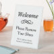 Willkommen Schwarz und Weiß Bitte Schuhe entfernen Sockelschild