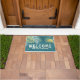 Das Welcome Tropical Golden Palm Family Name Doormats Door Mats besticht durch ein modernes tropisches Palmenblattmuster in einem goldenen und aquamarinen Design mit dem Text "Welcome" und Ihrem personalisierten Familiennamen am Fuß. Entworfen von © Evco Studio www.zazzle.com/store/evcostudio