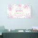 Winter Wonderland Thema Baby Dusche Begrüßungsbanner für Baby Mädchen. Dieses Banner ist perfekt für die Winterduschen. Das Farbschema ist sehr gürtlich in Rosa und lila mit etwas Gold/Glitzer Textdesign. Rosa und lila Babyduschbanner mit niedlichen Schneeflocken. Digitale Darstellung von Kristine Lee. Weitere Informationen finden Sie unter www.kristineleedesigns.com