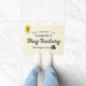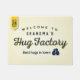 Regen Sie Besucher zu Ihrem Zuhause mit diesem einzigartigen Typografieentwurf an, der die Mitteilung kennzeichnet, "Willkommen zu die Umarmungs-der Fabrik der Großmutter. Beste Umarmungen in der Stadt." Kennzeichnet auch die Leute, die Ikone nahe bei dem tagline umarmen. Entwurf erscheint in der Marine und im Gelb- und hellgelbemhintergrund. Fahne in der oberen links Ecke schließt Phrase, "öffnen 24 Stunden." ein