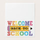 Farbenvolles "Welcome Back to School" Design mit Bleistift-Grafik und lebhaften Buchstaben. Ideal für die Dekoration von Klassenzimmern oder als kreative Inspiration für das neue Schuljahr für Lehrer, Schüler, Eltern und Bildungseinrichtungen.