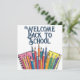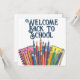 Das fröhliche Design "Welcome Back to School" mit farbenfrohen Stiften und Notizbüchern - ideal für Grußveranstaltungen im Schulunterricht, Dekor im Klassenzimmer, Flyer, Plakate oder Social Media-Beiträge im Bildungsumfeld.