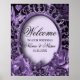 Willkommen Hochzeitsfeier Lila floralen Rahmen elegantes Poster. Einzigartiges, schönes, stilvolles Design. Leicht personalisiert zu sein. Schriftart Stil, Größe und Farben können geändert werden. Matching-Elemente verfügbar.