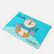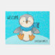 Süße Pinguingrafik. Gemusterter blauer Hintergrund. Willkommene Türmatte der Gewohnheit mit justierbarem Text. Wahlen für Änderungen auf willkommenem Text- und Familiennamen. Schnelle und bedienungsfreundliche Schablone.