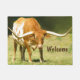 Ein hübsches Texas Longhorn ziert diese Fußmatte mit einem texted "Willkommen". Behalten Sie den Text wie ist, oder ändern Sie ihn zu Ihrer Präferenz.