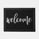 Diese Fußmatte kennzeichnet das Wort "Willkommen" in einem modernen handgeschriebenen weißen Skript mit einer weißen Kontur um sie. Hintergrundfarbe kann durch das Vorwählen einer Farbe von der Palette unter Verwendung des Kundenbezogenheitswerkzeugs geändert werden, oder Sie können Ihren eigenen Hexecode eingeben.