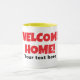 Willkommen Zuhause personalisierte Kaffee Tasse Geschenk. Machen Sie Ihre eigene niedliche Tasse, um jemanden wieder zu begrüßen. Fügen Sie Ihren eigenen Text und Ihre eigenen Farben hinzu.