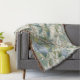 Willow Little Magnolia Wallpaper Floral Coastal throw blanket with beautiful toile jardin style print in shades of ivory, blue, and green greenery.