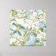 Willow Little Magnolia Wallpaper Floral Coastal artwork canvas print with beautiful toile jardin style print in shades of ivory, blue, and green greenery.