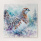 Dieses Puzzle zeigt ein wunderschönes Aquarellbild eines wilden ptarmigans (auch Weidenhahn genannt), das die faszinierende Schönheit dieses Waldvogels mit einer künstlerischen Mischung aus Realismus und fließendem Ausdruck vereint. Der sorgfältig gepflegte Gewürzhahn zeigt eine harmonische Mischung aus erdigen Braun, weichem Weiß und cooler Blues. Der Hintergrund zeichnet sich durch ein traumhaftes, winterliches Waldambiente aus, das mit weichen blauen, aquamarinen und lila Waschbecken geschaffen wurde und die ruhige und ätherische Qualität der Komposition steigert. Dieses Kunstwerk mit Alaskas Staat-Vogel ist perfekt für Vogelliebhaber, Naturliebhaber und Vogelkunstsammler geeignet und verschmilzt die Natur und Ruhe nahtlos.
