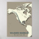 Verfolgen Sie die 8.000 km lange Wanderung des Wilson’s Warbler (Cardellina pusilla) von Nordamerika nach Zentralamerika. Eine moderne Kunstkarte für Sammler, Vogelliebhaber und Reisende.