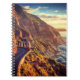 Dieses Notizbuch hat eine kurvenreiche Straße am Ozean, die auf ihm abgebildet ist.