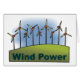 Eine helle Grafik von Windturbinen mit den Worten Wind Power darunter.