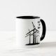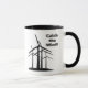 Fangen Sie den Wind! - windblown schwarze Beschriftung mit einer Gruppe der modernen Windkraftanlagen. Wahl der Keramik-Tassen- oder Reise-Tassenarten.