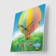 Künstler: Paul Sharp | Ein kleiner Junge und ein Mädchen, die in einem Heißluftballon über einer Farm fliegen