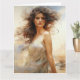 Diese bezaubernde Kunstkarte zeigt ein ausdrucksvolles Aquarellportrait einer jungen Frau, deren Haar dynamisch fließt, als ob sie im Wind gefangen wäre. Die raue Aquarellfarbe verleiht Energie, während ihre Eigenschaften schön klar bleiben. Diese Karte ist ideal, um eine Botschaft der Freiheit zu senden, für jemanden mit einer spirituellen Persönlichkeit oder für jeden, der dynamische und emotionale figurative Kunst schätzt.