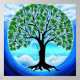 Der Baum des Lebens fällt einen Single Samen, während der Wind und die Wellen dahinter wüten. Erstellt mit KI-Software.