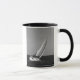 Kaffee-Tasse mit einem Schwarzweiss-Foto eines Segelboots.