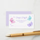 Diese Gewinnerkarte zeigt ein Aquarellschmetterlingsdesign mit lila, rosa und aqua-Schmetterlingen, Blume und Konfetti-Punkten. Personalisieren Sie den Text mit Ihrem eigenen. Es sind auch Matching-Elemente verfügbar.