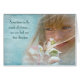 Kleines Mädchen mit zart Bouquet und Zitat.