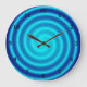 Eine vibrierende blaue Neonsteigung des königlichen Blaus oder des Kobaltblaus in einem abstrakten von Kreisspiralen in einer Drehung der weichen blauen Farben, die eine Illusion einer Hypnotik schaffen und Entwurf dizzying.