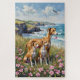 Eine anmutige Familienszene der Windhunde, die entlang einer luftigen Küstenwiese spielt. Mit einem eleganten erwachsenen Hund und zwei niedlichen Welpen zeigt dieses Kunstwerk Bewegung, Ruhe und natürliche Schönheit – perfekt für Hundeliebhaber und Küsten-Dekoration.
