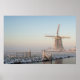 Windmühle im Schnee bei Sonnenaufgang Poster druck
