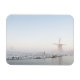 Rechteckiger Foto-Magnet mit einer Windmühle im Schnee neben einem Kanal bei einem nebligen Sonnenaufgang im Winter in den Niederlanden