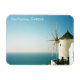 Aquarellbild einer Windmühle am Rande der Caldera in Oia auf der griechischen Insel Santorini