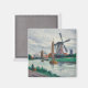 Dieses Design zeigt ein Gemälde des französischen Künstlers Maximilien Luce (1858-1941). Es zeigt Windmühlen an den Ufern eines Flusses in Holland, einer Region der Niederlande. Auf dem Fluss sind Segelboote. Der Himmel ist bewölkt und die Sonne reflektiert auf dem Wasser. Das Originalwerk wurde 1907 gemalt.