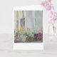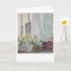 This blank note card features an original watercolor of a window box full of flowers.