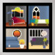 Erleben Sie eine kleine Wand mit diesem gemütlichen und farbenfrohen Kunstwerk. Original digitales Design von 4 Bildern in einem. Fügen Sie einen Rahmen für eine Designer-Touch hinzu.