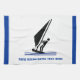 Windsurfer an Bord schwarz, blau Windsurfen Küchentuch mit einem minimalistischen Piktogramm-Ikone eines Windsurfers der schwarzen Silhouette und Ihr Text auf weißem Hintergrund mit blauem Rand. Dieses coole Design ist eine Vorlage und ist vollständig anpassbar. Personalisieren Sie es und ändern Sie Text mit Monogramm, Namen oder Ihrer Nachricht.