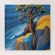 Von den sonnigen Küstenstreifen aus blickt ein einsamer Baum über das Blaue Meer