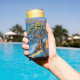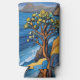 Von den sonnigen Küstenstreifen aus blickt ein einsamer Baum über das Blaue Meer