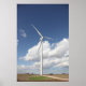 Foto eines weißen Set aus Windkraftanlagen gegen einen blauen Himmel.