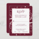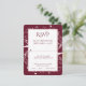Senden Sie Ihren Gästen eine einfache und elegante Wine Blüh Wedding RSVP Card mit Ihrer Einladung. Das Design der Response-Karte zeichnet sich durch eine elegante, weiche Farbe aus, geblüht mit farblich abgestimmtem Hintergrund. Personalisieren Sie Ihre Einstellungen mit dem Datum der Antwort und den Menüoptionen. Mit diesem Design sind auch weitere Hochzeitswaren erhältlich.