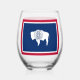 Wyoming flag wine glass, American bison drinking glass, patriotic state emblem gift, Western heritage wine accessory, Cowboy State table decor, rustic red white blue glassware, cultural identity home accent, state pride wine cup, elegant USA flag drinkware, stemmed glass with state flag, high quality printed wine glass, frontier themed dinnerware, bold Western themed goblet, decorative Wyoming patriotic glass, symbolic bison silhouette glass, regional pride table accessory, unique state flag drinkware, expressive and functional wine glass, patriotic celebration home piece, iconic USA themed wine gift.