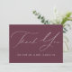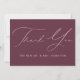 Elegante Hochzeitsdankkarte mit "Dankeschön" in einem weißen Kalligrafieschrift mit Ihrem Nachnamen unten mit einem lila Hintergrund. Die elegante Hochzeit Dankeschön-Karte kehrt um Ihre individuelle Danksagung und Vornamen in weißer Schrift anzuzeigen. Design koordiniert mit unserer Hochzeitskollektion "Moderne Elegance".