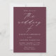 Minimalistische, moderne Hochzeitseinladung, die Ihre Hochzeitsdetails in einer schlichten, weißen Schrift mit "Hochzeit von" in einer eleganten Kalligraphie-Schrift zeigt. Der lila Hintergrund des Weins kann in eine Farbe Ihrer Wahl geändert werden. Entworfen, um mit unserer Hochzeitskollektion "Moderne Elegance" zu koordinieren.