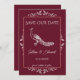 Personalisieren Sie eine einmalige Hochzeitsankündigung mit einem Wein Pfau Save the Date Geblüht. Das Ankündigungsdesign besticht durch einen eleganten Pfau mit Schnörkeln. Zusätzliche Ankündigung Datum freihalten für dieses Design in verschiedenen Farben verfügbar.