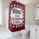 Ein lustiges typografisches Design, das "Wein: Kann empfehlen, 5 Sterne" sagt. Es ist schwarz und bordeauxrot auf einem weißen Rechteck mit funky, spielerisch weißen Punkten umgeben, alles auf bordeauxrotem Hintergrund.