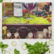 Farbenfrohe Küchenhandtücher aus der KI - "The Wine Tasting"-Design mit einer Vielzahl von Weingläsern und einer Rotwein-Flasche. Perfekte Küchendekoration für Weinliebhaber!