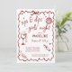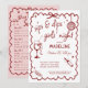 Veranstalten Sie einen stilvollen und lustigen Mädchenabend mit dieser Winery Girls Night Out Weinverkostungs-Scorecard-Einladung. Für Weinliebhaber konzipiert, verfügt sie über ein sauberes und modernes Layout mit einem kräftigen roten Akzent, was sie perfekt für Geburtstagsfeiern, Junggesellinnenabschiede oder zwanglose Treffen im Weinberg macht. Die Vorderseite lädt Ihre Gäste zum Event ein, während die Rückseite eine Weinverkostungs-Scorecard bietet, damit jeder die Lieblingsweine im Laufe des Abends bewerten und aufzeichnen kann.