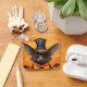 This playful Halloween bat design features a tall pointy hat, wide ears, orange bow tie, and tiny wings on a bright orange background. A whimsical and spooky character perfect for Halloween decor, snail mail, or seasonal collecting.